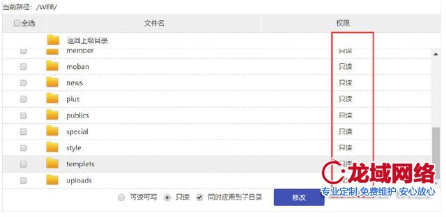 处理方法:windows服务器环境,通过设置文件夹和文件权限为,只读权限即可,记得是everyone的权限,linux环境,只需要把文件所有者设置为root即可(默认为www)权限。